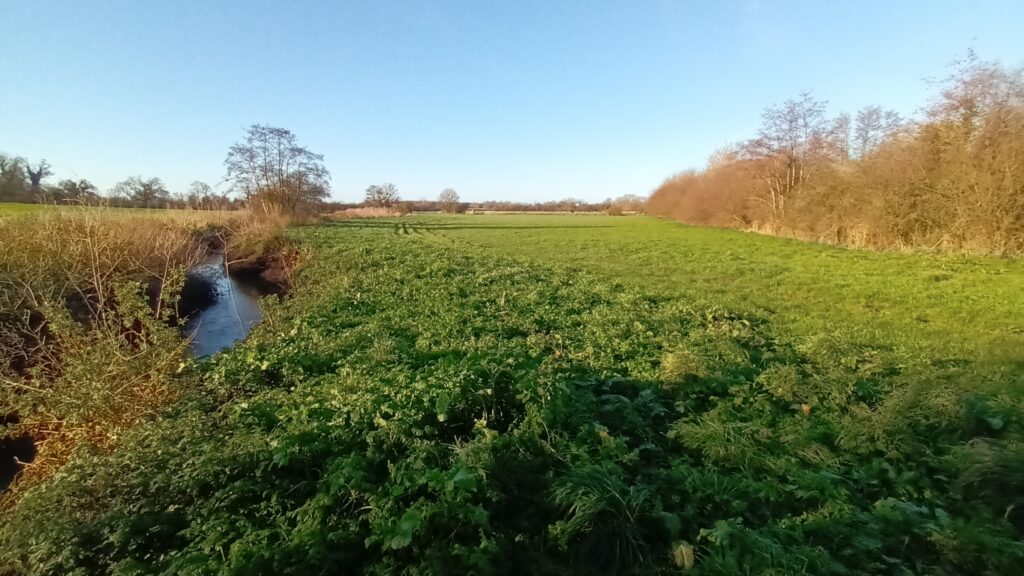 Le Rieu à gauche, le marais de Lison, les implantations ferroviaires à droite derrière la haie (G.L.).