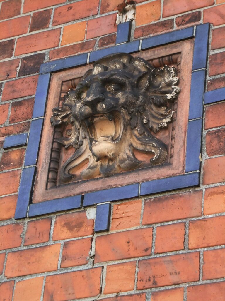 Briqueterie, tuilerie sur Sainte-Marguerite d’Elle près de la gare et du P.N., seul existe encore l’ancien bureau avec cette belle production en terre cuite, une tête de lion (G.L.)
