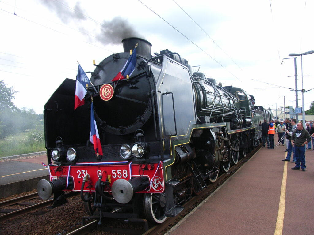 La Pacific vapeur en gare de Lison en 2009 (Pacific Vapeur Club de Sotteville-les-Rouen), la locomotive 231 G 558 fut construite en 1922 aux Batignolles-Châtillon, près de Nantes (G.L.).