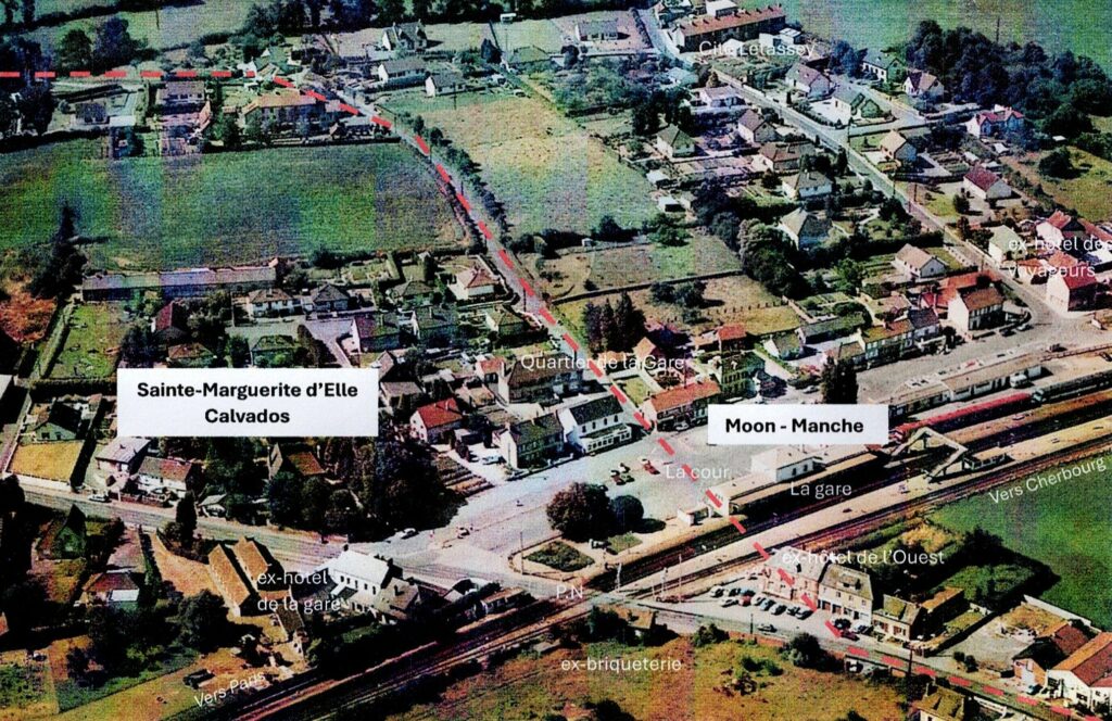 Une gare et un village sur deux départements et trois communes : Moon, Sainte-Marguerite et Lison (cette dernière au nord et à l’ouest de la gare n’apparaît pas sur la photo) (G.L.).